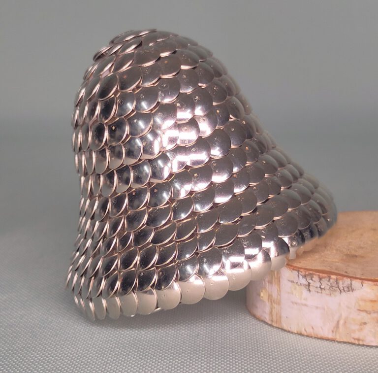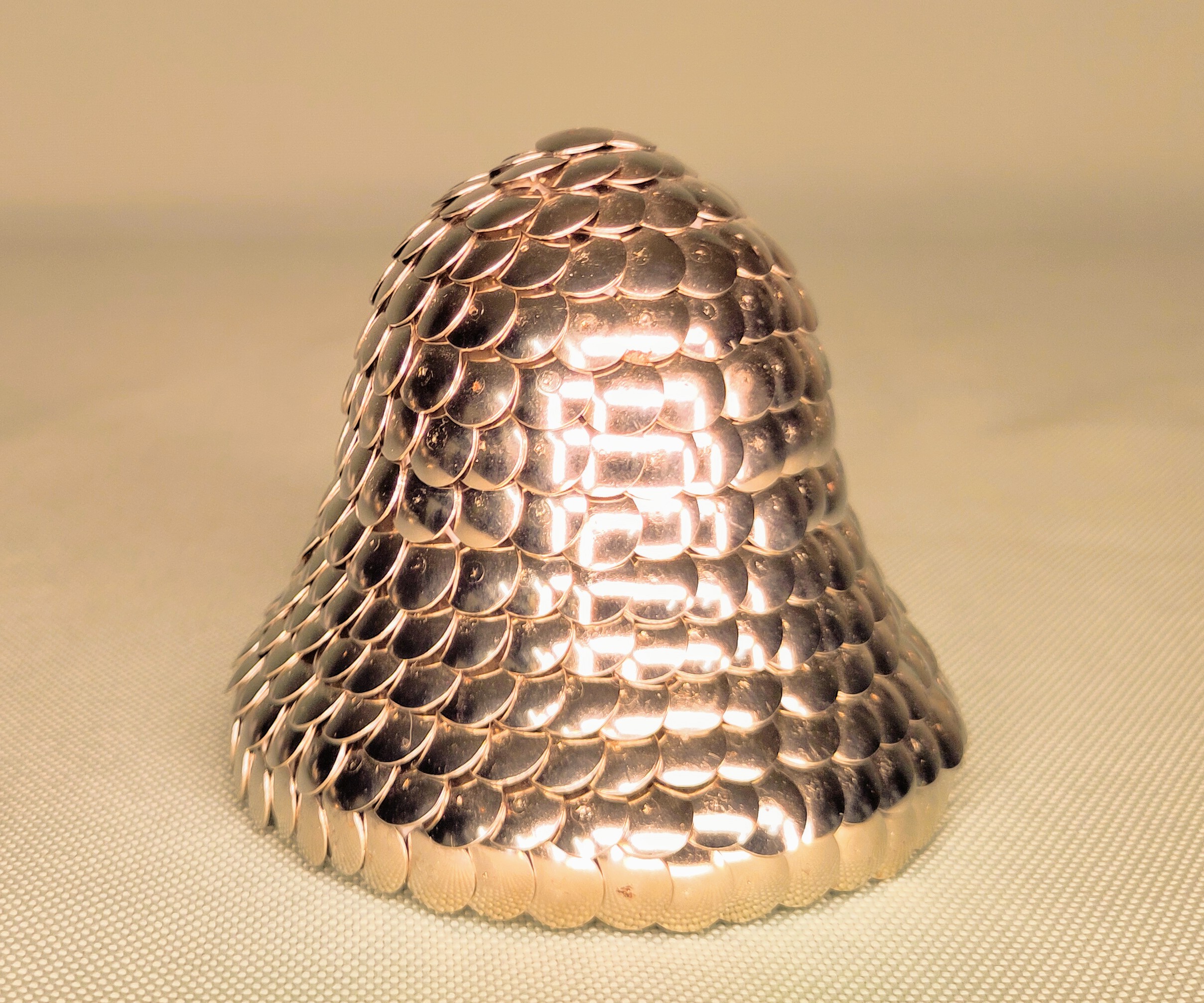 Bei der Schuppenkunst werden Reißnägel in einen Styropor-Körper gedrückt und mit Spezialkleber fixiert.